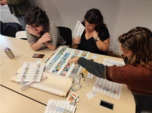 Esquisses de jeux sur les tables, discussions animées autour des règles, ajustements et tests de prototypes : chaque équipe trouve son rythme, partage ses idées et transforme l’inspiration en outils concrets. Maud poursuit :
